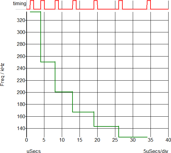 PerCycleTiming( :Gate , 'frequency' )will generate a vector which, when plotted on the waveform viewer appears like: