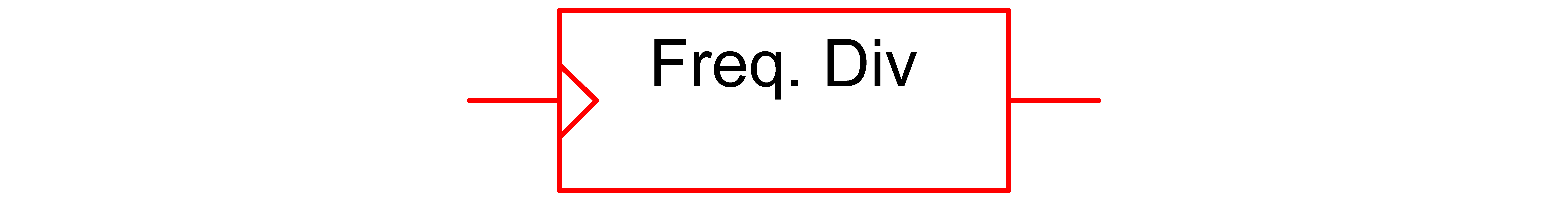 This device is a positive edge triggered frequency divider. Three model parameters allow arbitrary definition of the divide ratio, output duty cycle, output phase and initial delay. Operation of the frequency divider is illustrated by the following diagram which shows the output of a frequency divider with a DIV_FACTOR of 10 and two alternative values of HIGH_CYCLES.