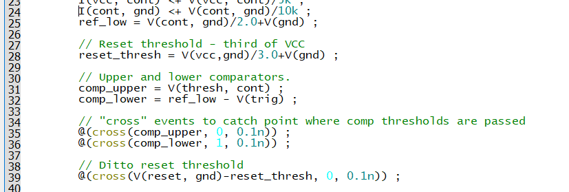 Let's look at some of the 'C' lines and corresponding Verilog-A lines.