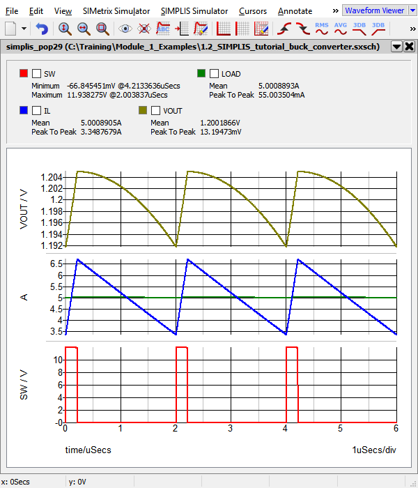 3. Open the schematic titled 1.2_SIMPLIS_tutorial_buck_converter.sxsch.