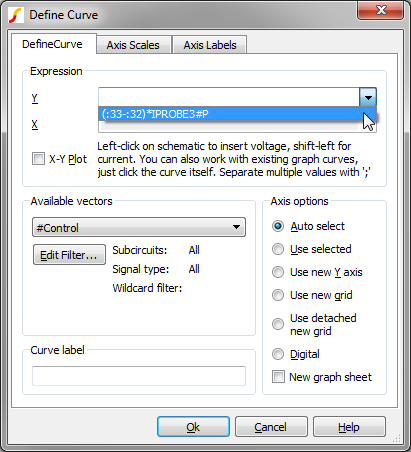 enter expressions defining the Y and X axis of the curve. By default the dialog assumes
