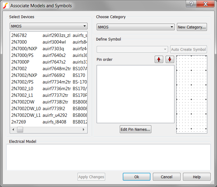 - In the Select Devices drop-down box, select the NMOS category as shown