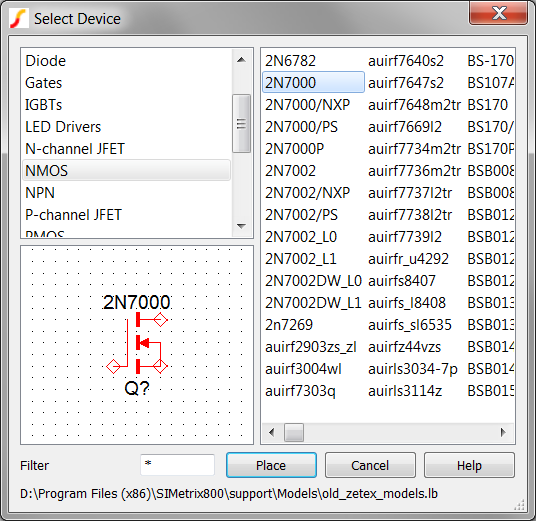 example, the 2N7000 is a built-in model, which has a built-in symbol and an association