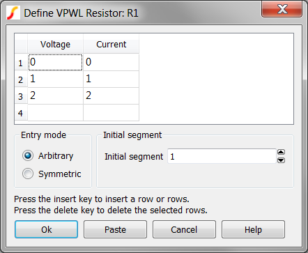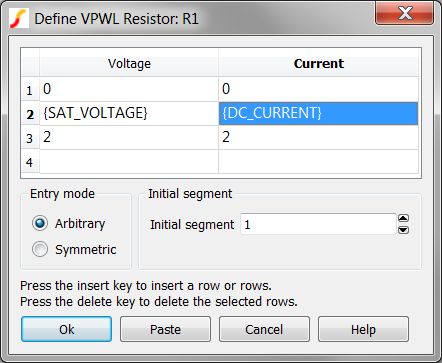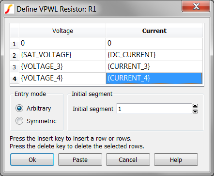 - PWL resistors require the first and last segments to have positive resistance.