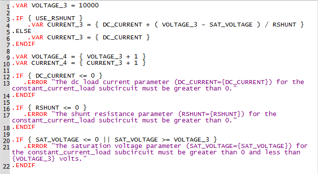 the constant_current_load.sxcmp schematic, and each .ERROR statement is output