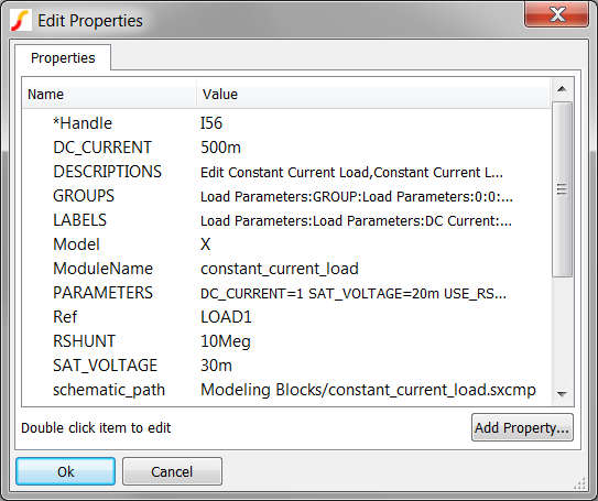 - Change the DC_CURRENT, RSHUNT, and SAT_VOLTAGE properties to 0.