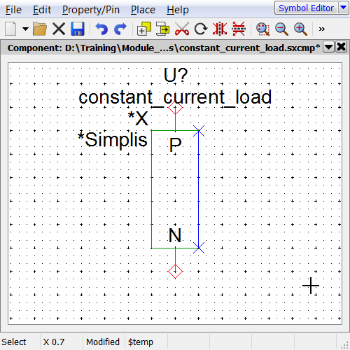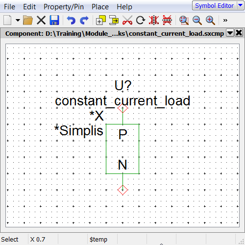 - Open the constant_resistance_load.sxcmp schematic component created during