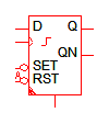 The D-Type Flip-Flop with Set/Reset models a generic clocked data-type Flip-Flop with either asynchronous or synchronous set and reset inputs. The Q and QN outputs can change state only on the specified clock edge unless the asynchronous set or reset is asserted. The clock edge trigger can be set with the Trigger Condition parameter to be either rising edge ( 0_TO_1 ) or falling edge ( 1_TO_0 ). If set and reset inputs are not required, the D-Type Flip-Flop can be used.