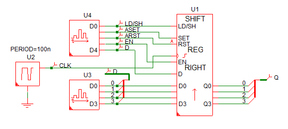 For the right shift register with both asynchronous and synchronous set and reset inputs, see Shift Register (Right) with both Sync and Async Set/Resetkeyword.