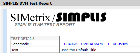 The second test uses the default title SIMPLIS DVM Test Report: