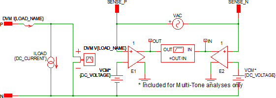 | DC_VOLTAGE | 5 | Real | n/a | V | The common mode voltage seen by the Bode plot probe included in this load. This parameter is used only in Multi-Tone mode. |