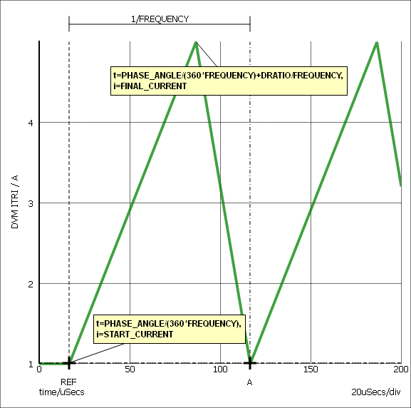 Tri(REF, START_CURRENT, FINAL_CURRENT, FREQUENCY, DRATIO)