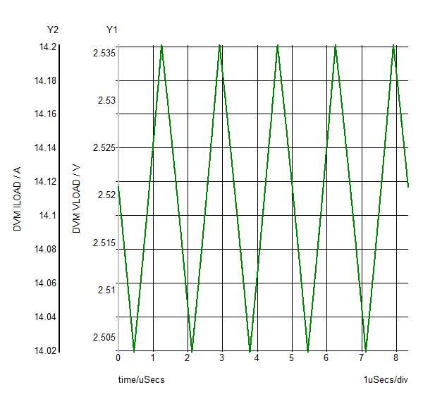 Max_VLOAD PASS: Max. Output1 Voltage (2.53579) is less than or equal to Max. Output1 Voltage Spec (2.625)