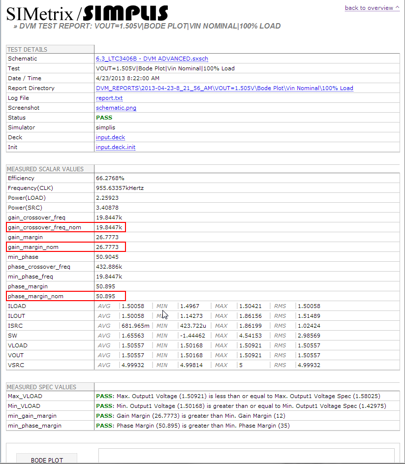 When this testplan is run on the schematic from 6.3 Using Jumpers (available from SIMPLIS_dvm_tutorial_examples.zip at this path: