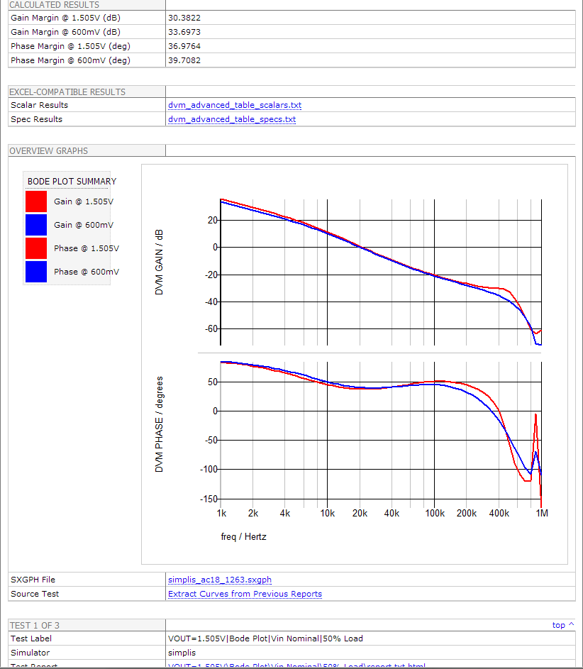 NoSimulation     ExtractCurve(VOUT=1.505V|Bode Plot|Vin Nominal|50% Load,DVM Phase,DVM Phase@1.505V,Bode Plot Summary,A,bodephase,xScale=log color=red ) ExtractCurve(VOUT=1.505V|Bode Plot|Vin Nominal|50% Load,DVM Gain,DVM Gain@1.505V,Bode Plot Summary,A2,bodemag,xScale=log color=red) ExtractCurve(VOUT=0.6V|Bode Plot|Vin Nominal|50% Load,DVM Phase,DVM Phase@600mV,Bode Plot Summary,A1,bodephase,xScale=log color=blue) ExtractCurve(VOUT=0.6V|Bode Plot|Vin Nominal|50% Load,DVM Gain,DVM Gain@600mV,Bode Plot Summary,A2,bodemag,xScale=log color=blue) PromoteGraph(Bode Plot Summary)       Extract Curves from Previous Reports