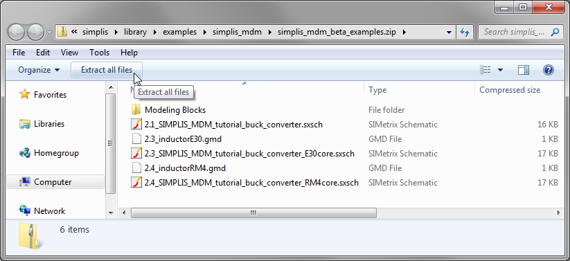 3. On the Explorer window, select Extract all files. Extract the files to C:\SIMPLIS MDM or some other location on your computer.