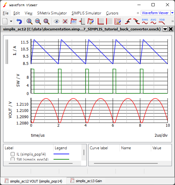 A schematic saved at this state can be downloaded here: 7_SIMPLIS_tutorial_buck_converter.sxsch.