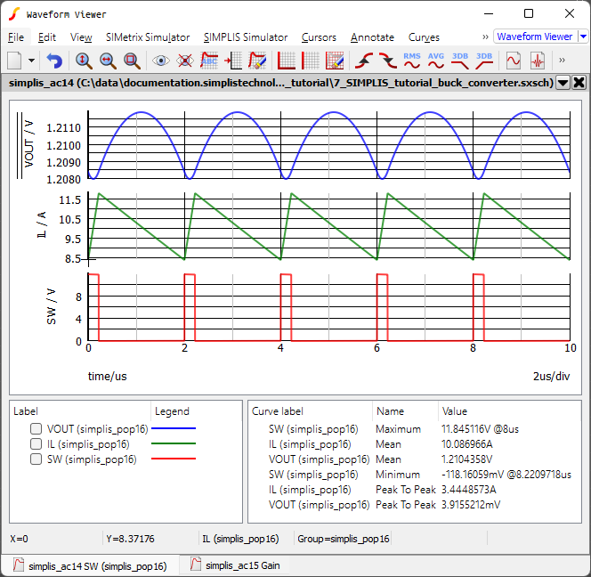 A schematic saved at this state can be downloaded here: 9_SIMPLIS_tutorial_buck_converter.sxsch.