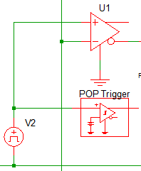 4. Place the POP trigger symbol to the right of the oscillator V2.