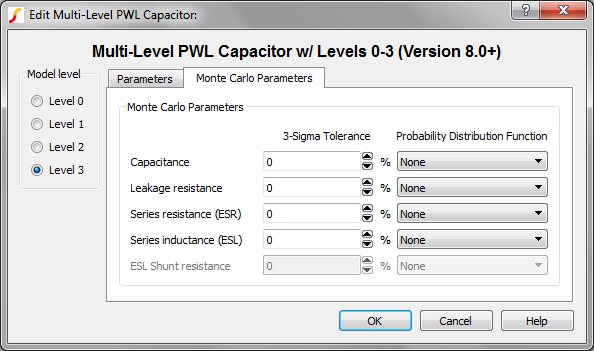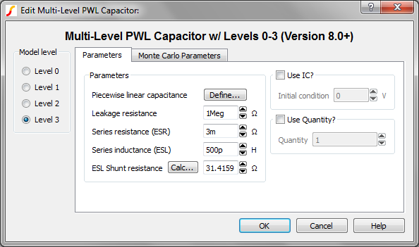 Parts Selector Menu Location: Passives > Multi-Level PWL Capacitor Level 0-3 w/Quantity (Version 8+)