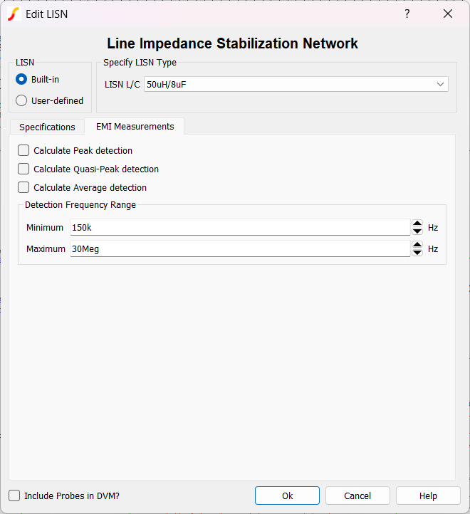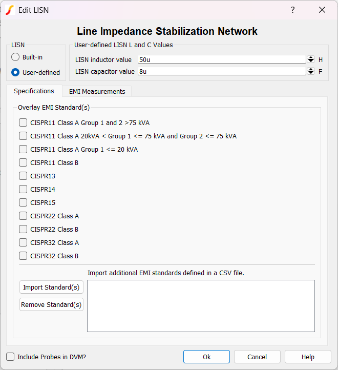 Selecting the Include Probes in DVM? checkbox will prepend "DVM" to all probes located in the LISN.