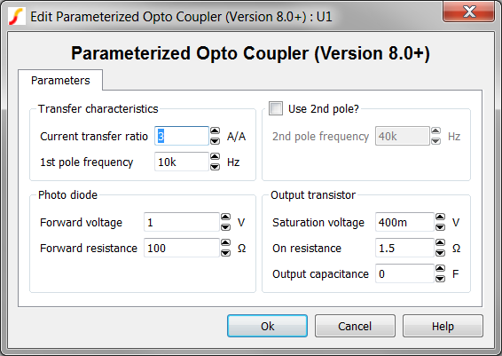 1st pole frequency Hz The opto coupler model allows you to define two poles in the transfer function.