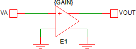 This is the one case where you actually don't need a multiplier at all. Multiplication of a time-varying signal by a constant value is a simple gain operation and can be implemented with a voltage-controlled voltage source. The following circuit implements the equation ???MATH???V_{OUT} = GAIN \times V_A???MATH???.